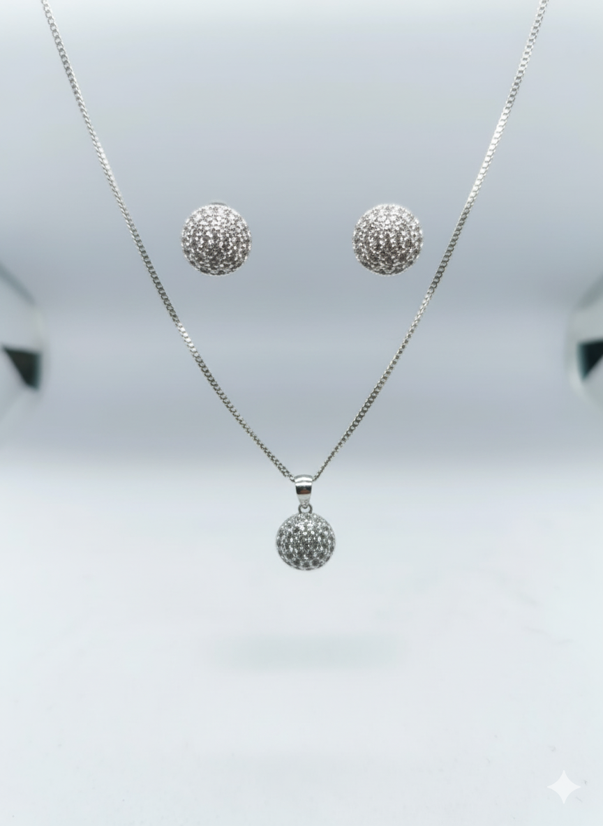 Descubre el encanto de la sencillez radiante con nuestro Conjunto Círculo de Luz. Este set atemporal, elaborado en plata .925, presenta un delicado collar y aretes con un diseño minimalista de esfera brillante.